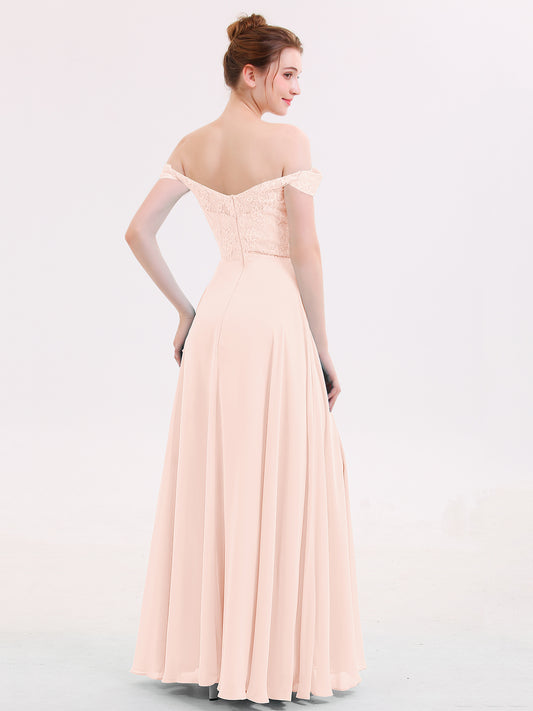 Babaroni LillianLillian Fuera Del Hombro Gasa Y Encaje Imperial Vestido Rosa Perlado