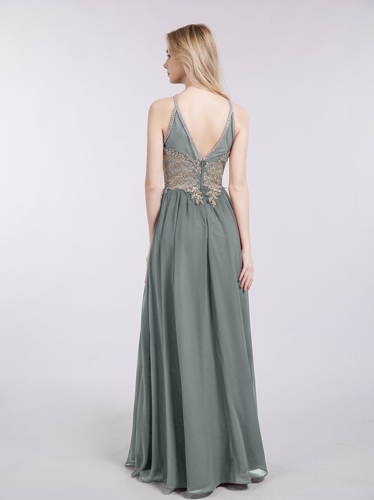 Babaroni MeroyMeroy Espalda Abierta Largo Saten Corte Con Escote En V Gris Acero