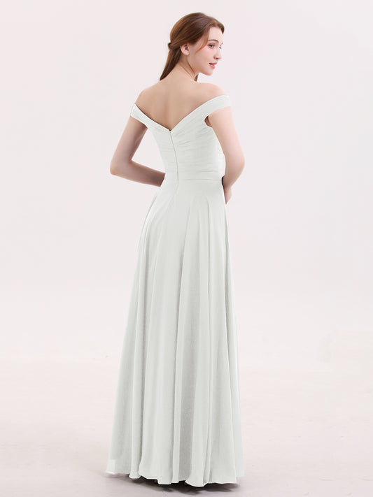 Babaroni SebastianeSebastiane Fuera Del Hombro Gasa Vestidos Con Apertura Marfil