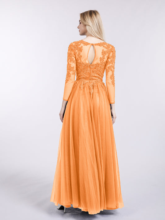 Martha Tul Aplicado Largo Mangas Vestido Naranja Tallas Grandes
