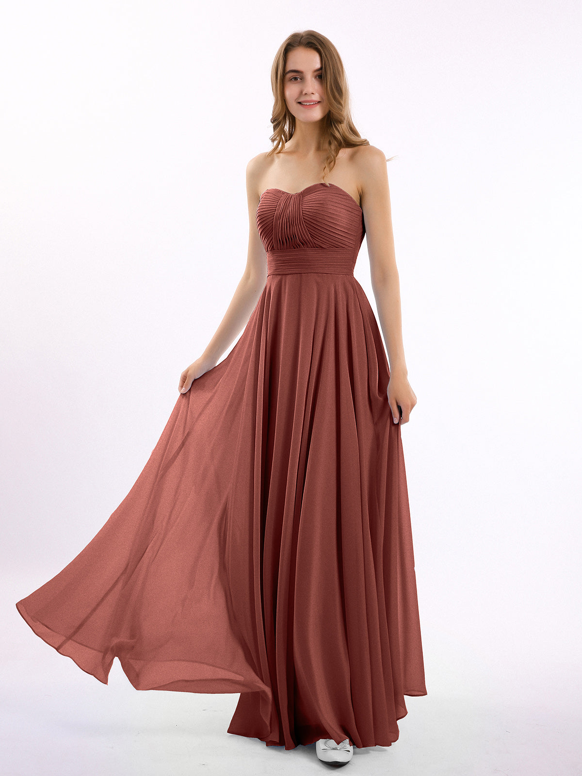 Camila Sin Tirante Gasa Plisado Cortes De Dama De Honor Terracota