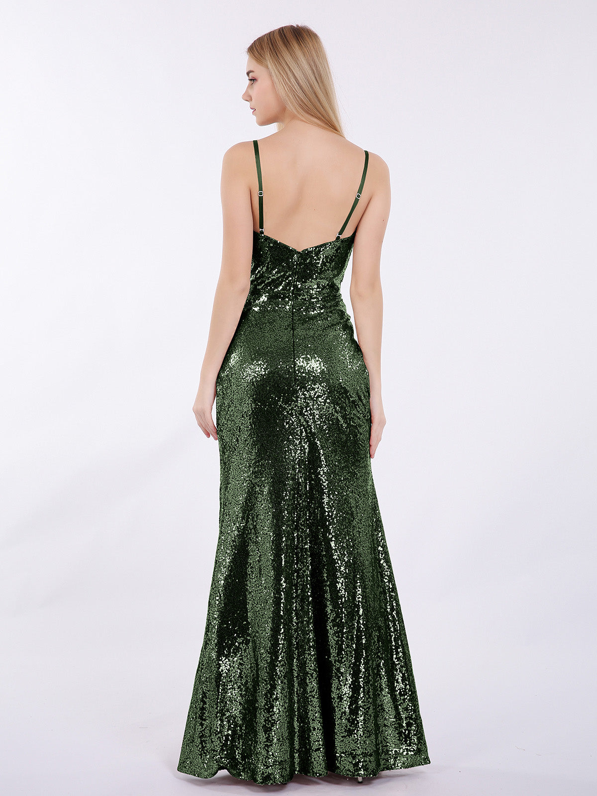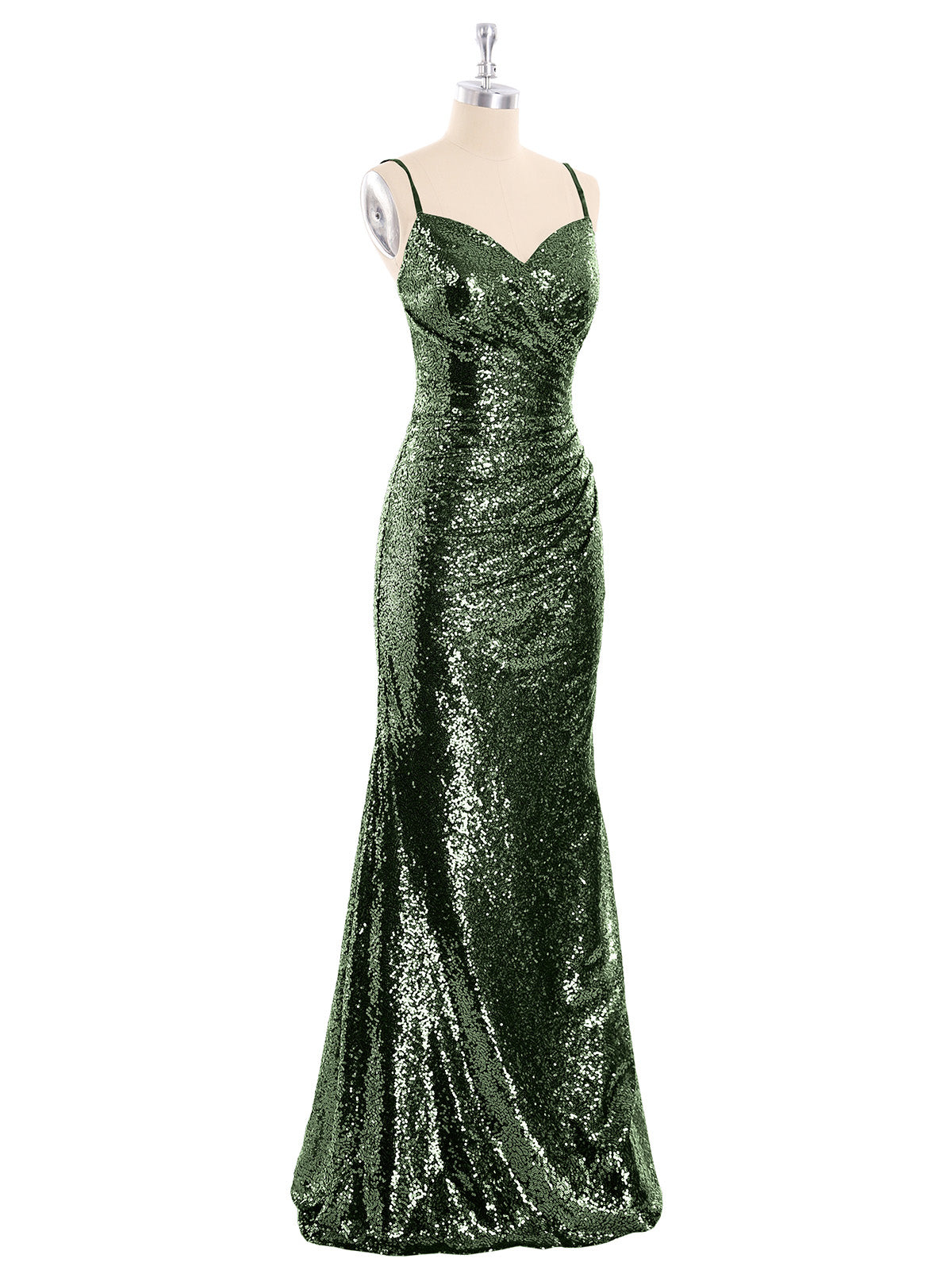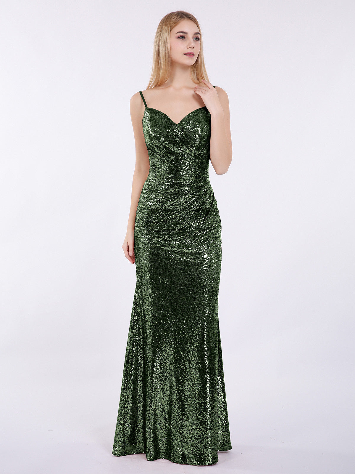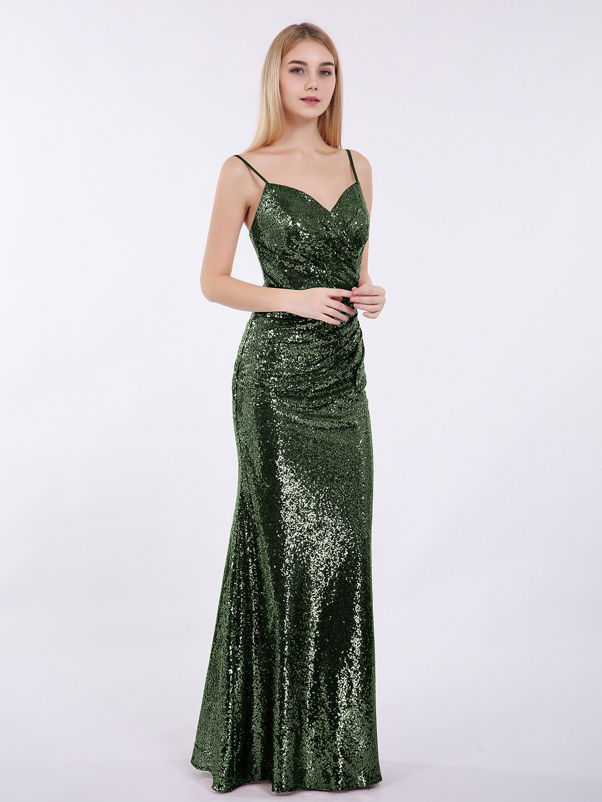 Cathy Tirante Espagueti Lentejuelas Corte Con Novio Verde Oliva Tallas Grandes