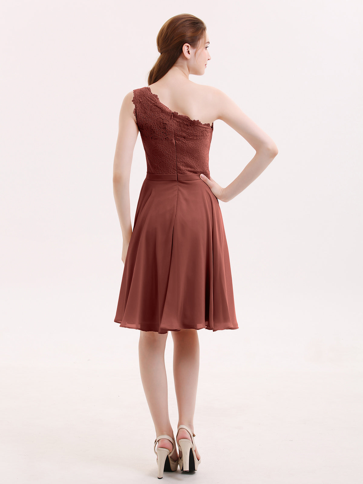 Cheryl Un Hombro Corte Encaje Vestido De Dama De Honor Terracota Tallas Grandes