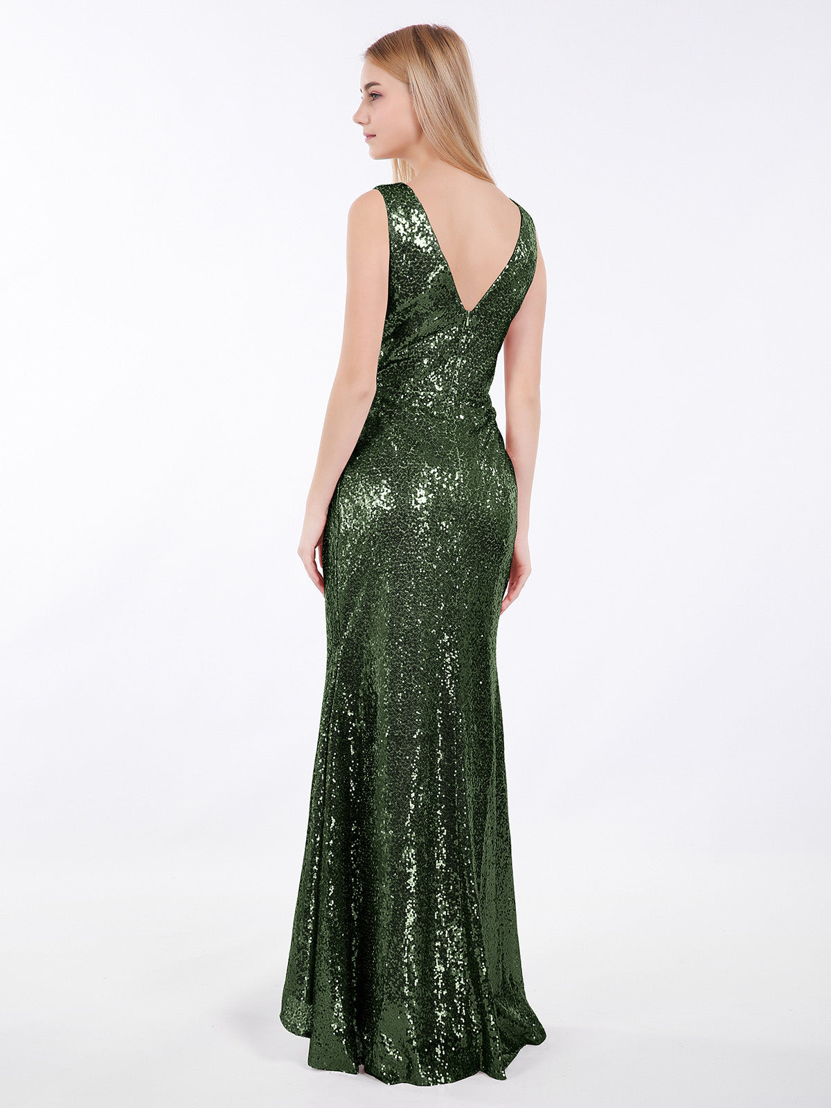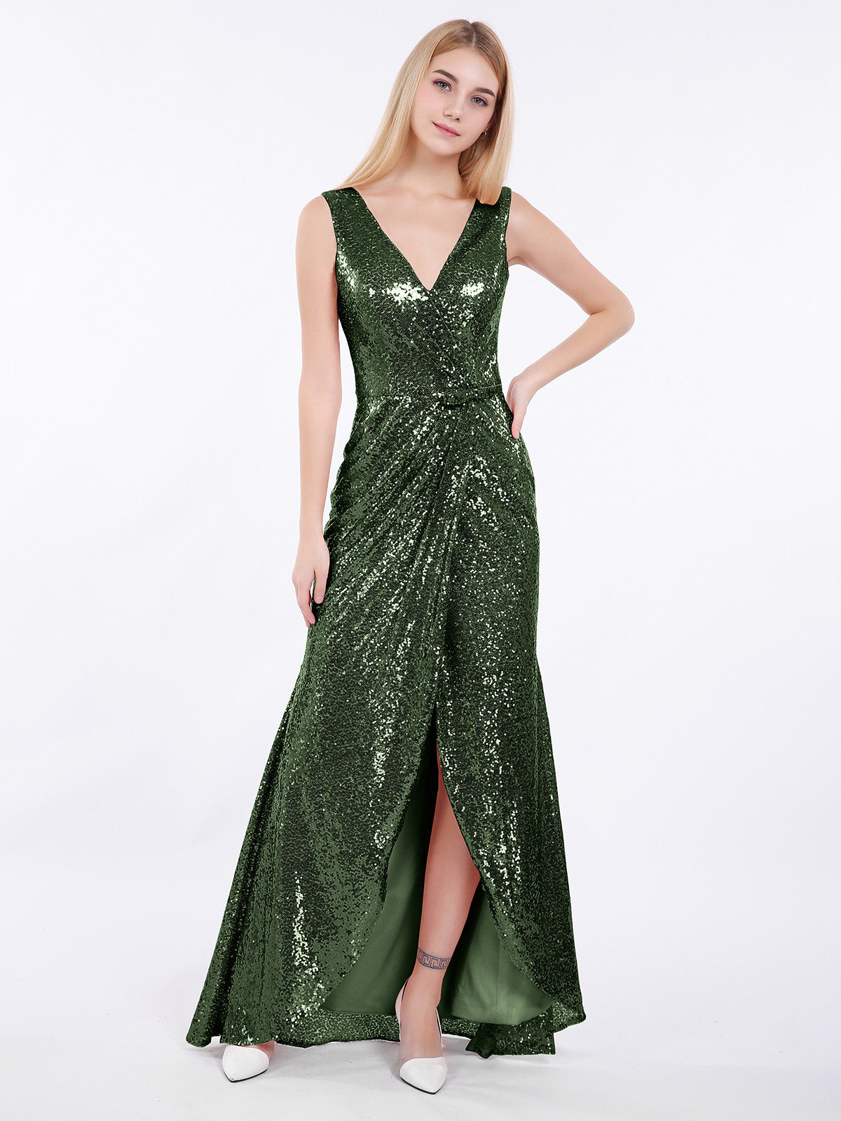 Ciel Corto Frente Largo Espalda Lentejuelas Vestido Verde Oliva Tallas Grandes