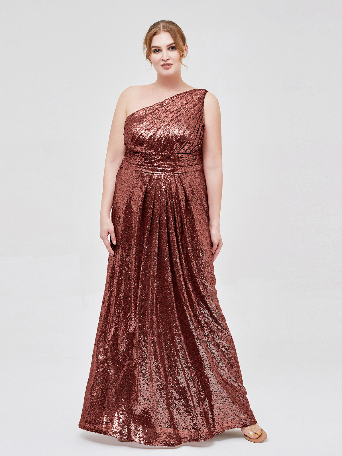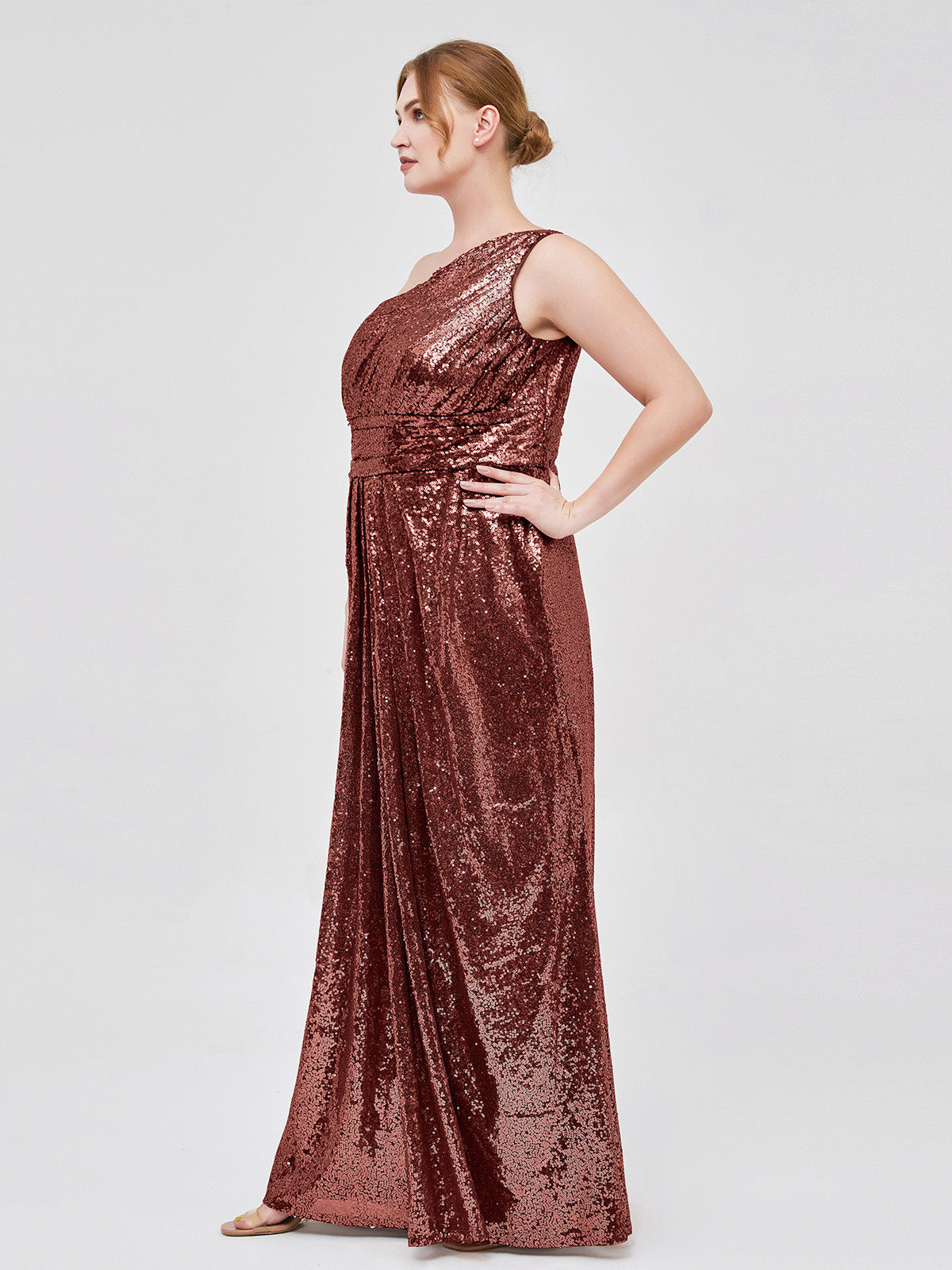 Claire Un Hombro Largo Lentejuelas Corte Terracota Tallas Grandes