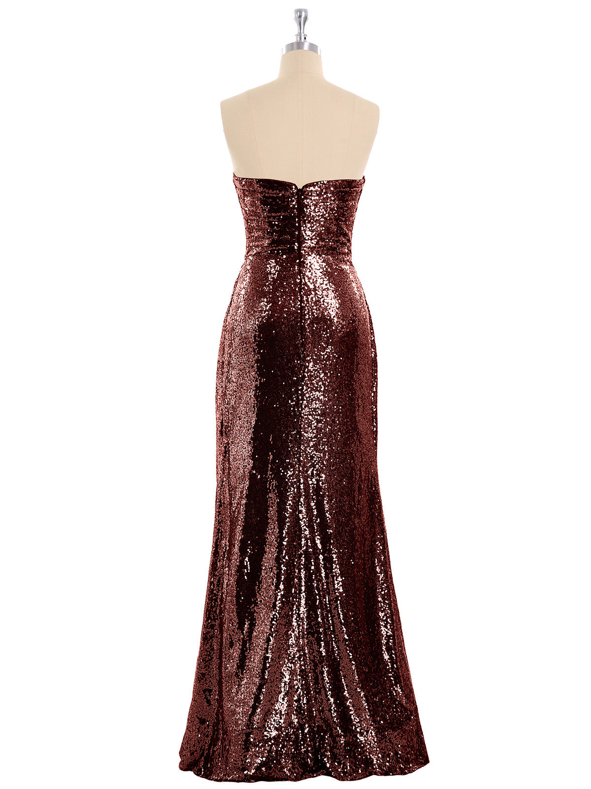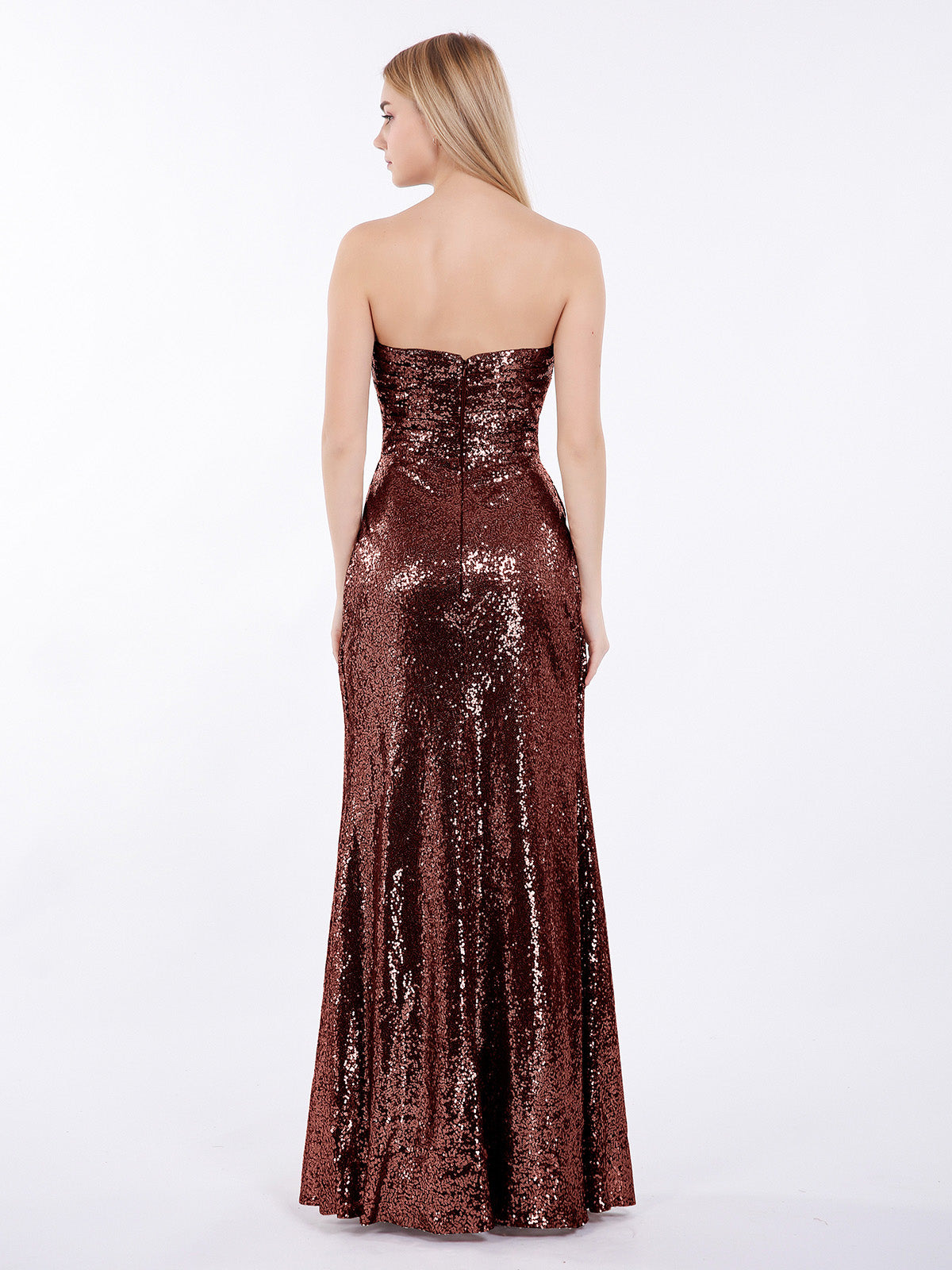 Clara Sin Tirante Hasta El Topillo Lentejuelas Vestido Terracota Tallas Grandes