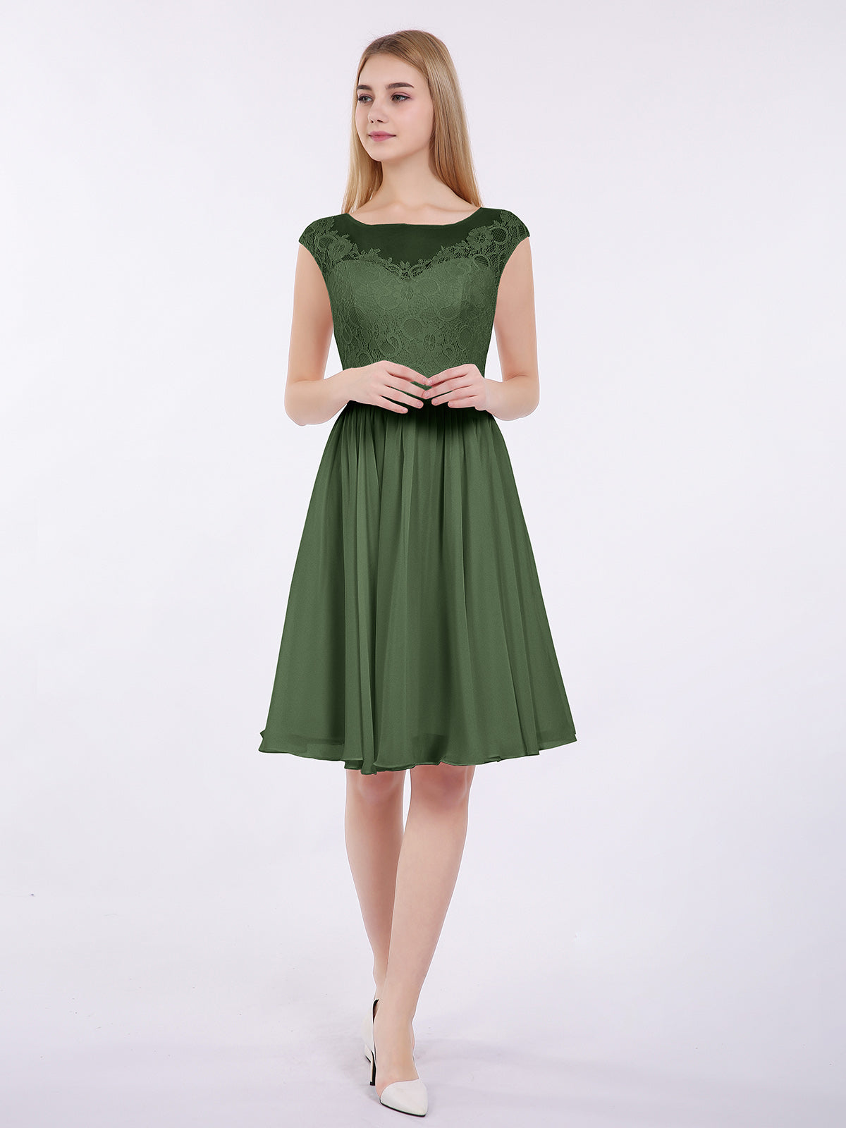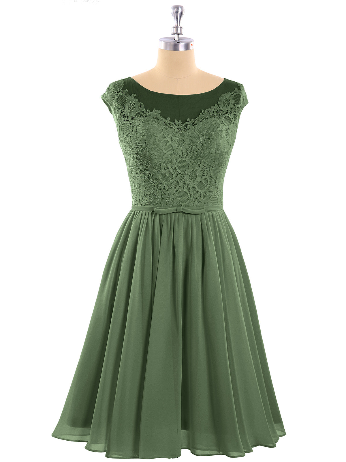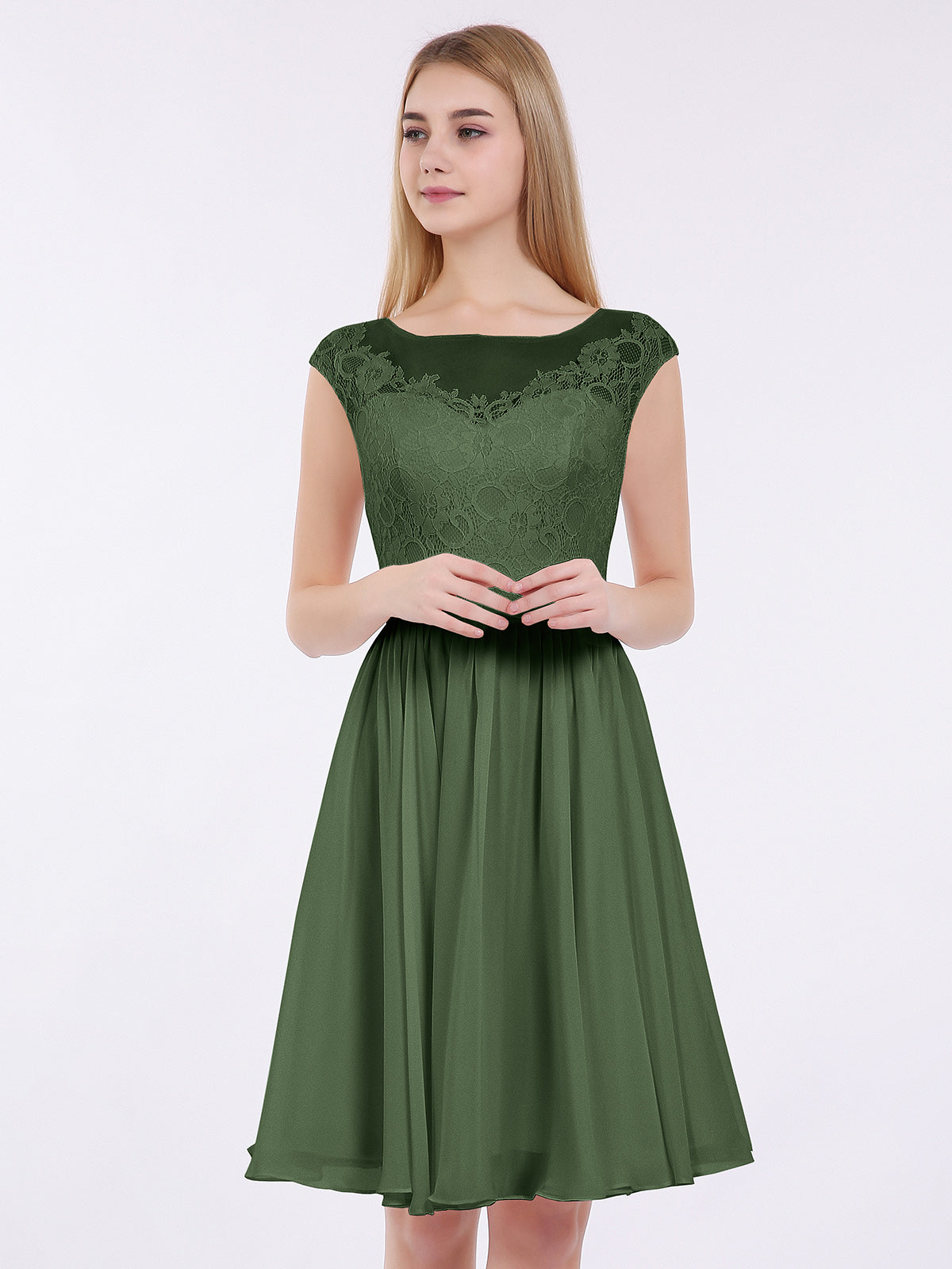 Erica Gasa Y Encaje Corto Corte De Dama De Honor Verde Oliva Tallas Grandes
