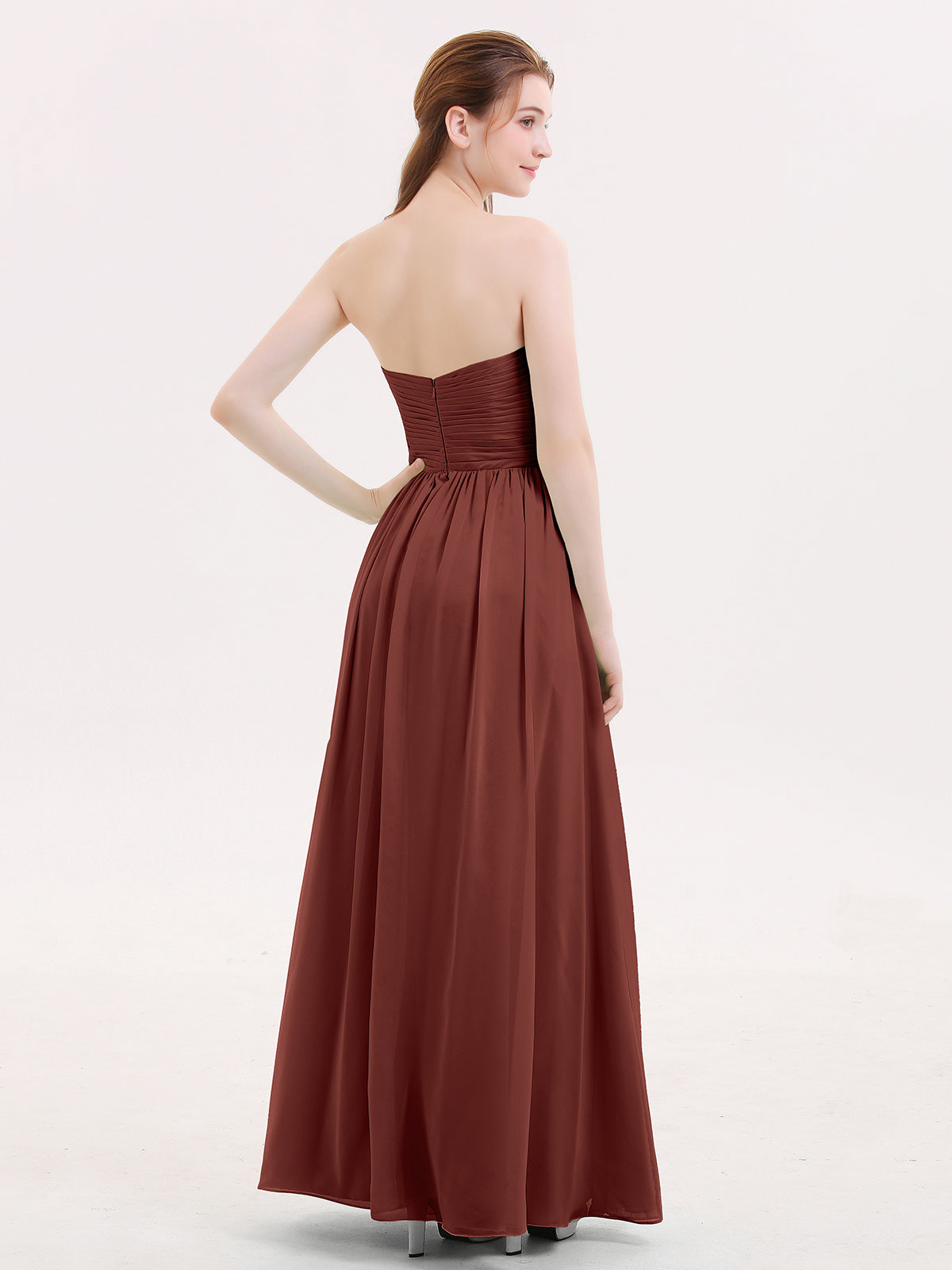 Isabel Sin Tirante Cruzado Y Plizado Corte De Dama De Honor Hasta El Topillo Terracota Tallas Grandes