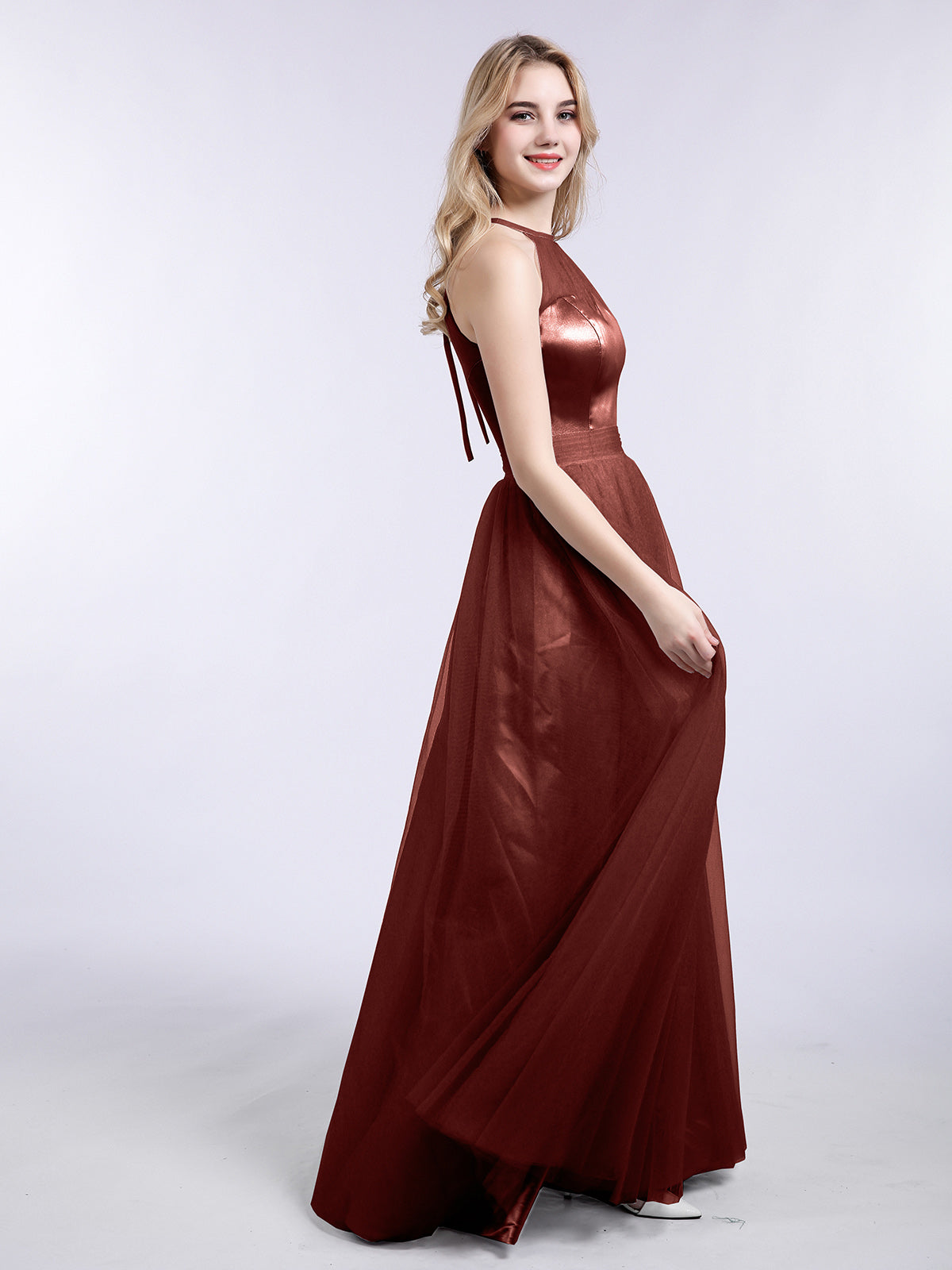Heloise Largo Gasa Cabestro Vestidos De Dama De Honor Tahití