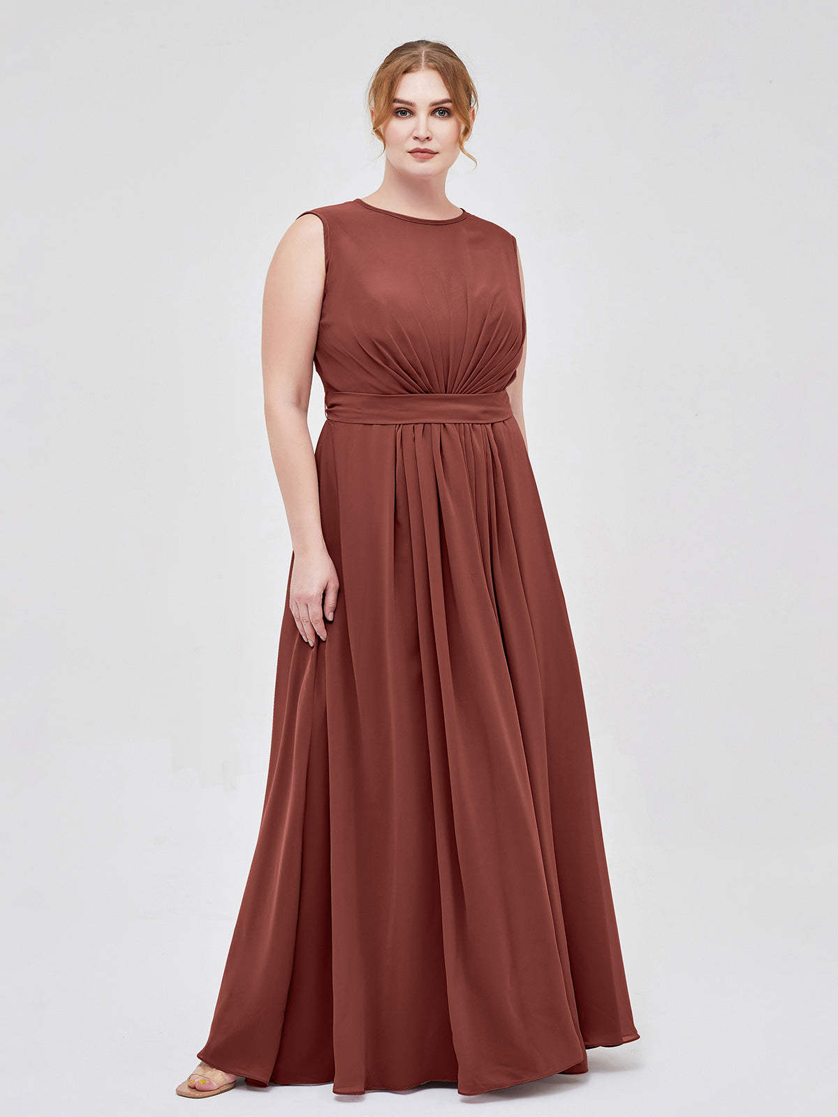 Jessie Envoltura Sintetica Largo Gasa Corte Con Cinturon Terracota Tallas Grandes