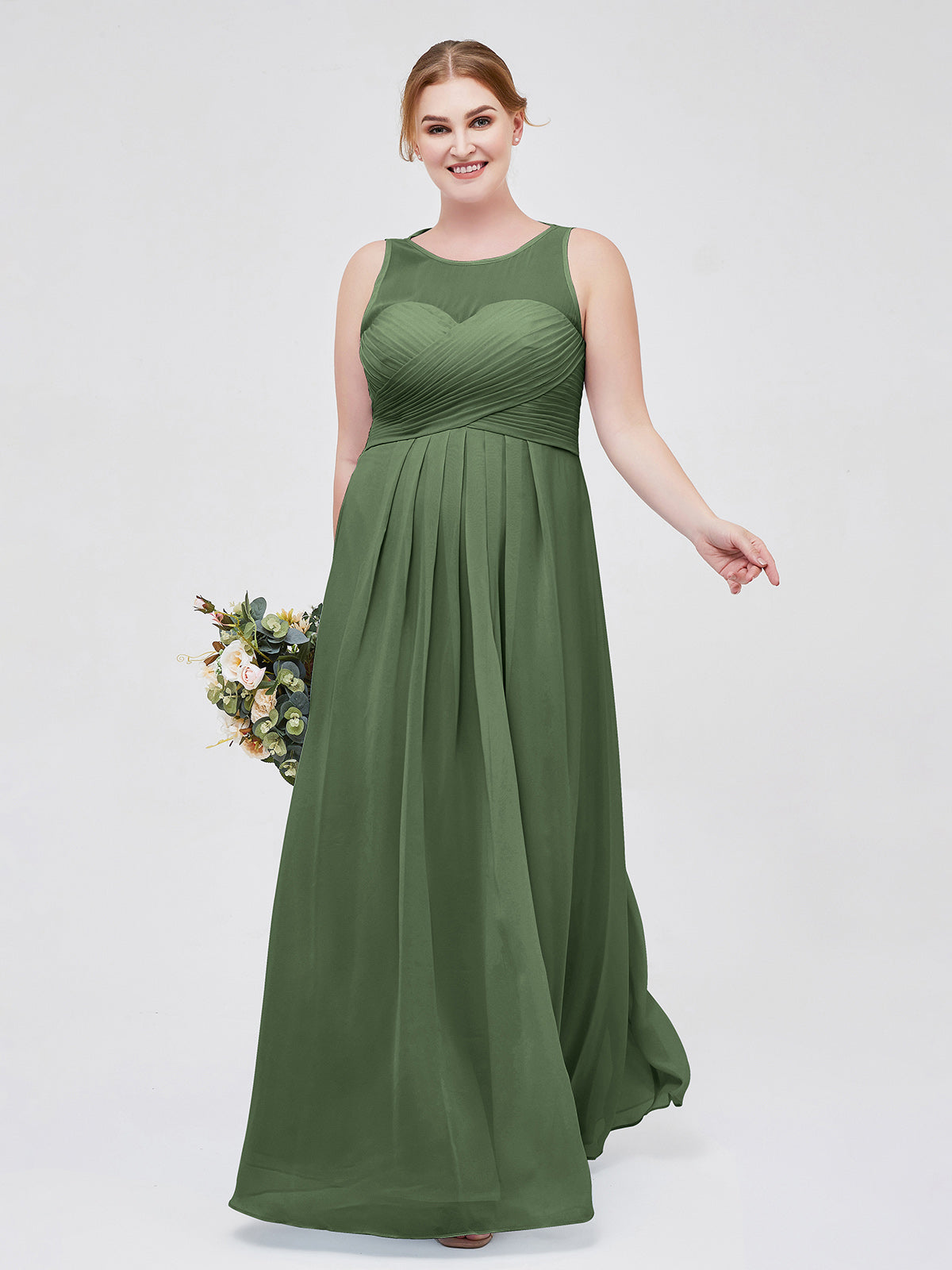 Jocelyn Espejismo Novio Corte Imperial Gasa Corte Verde Oliva Tallas Grandes