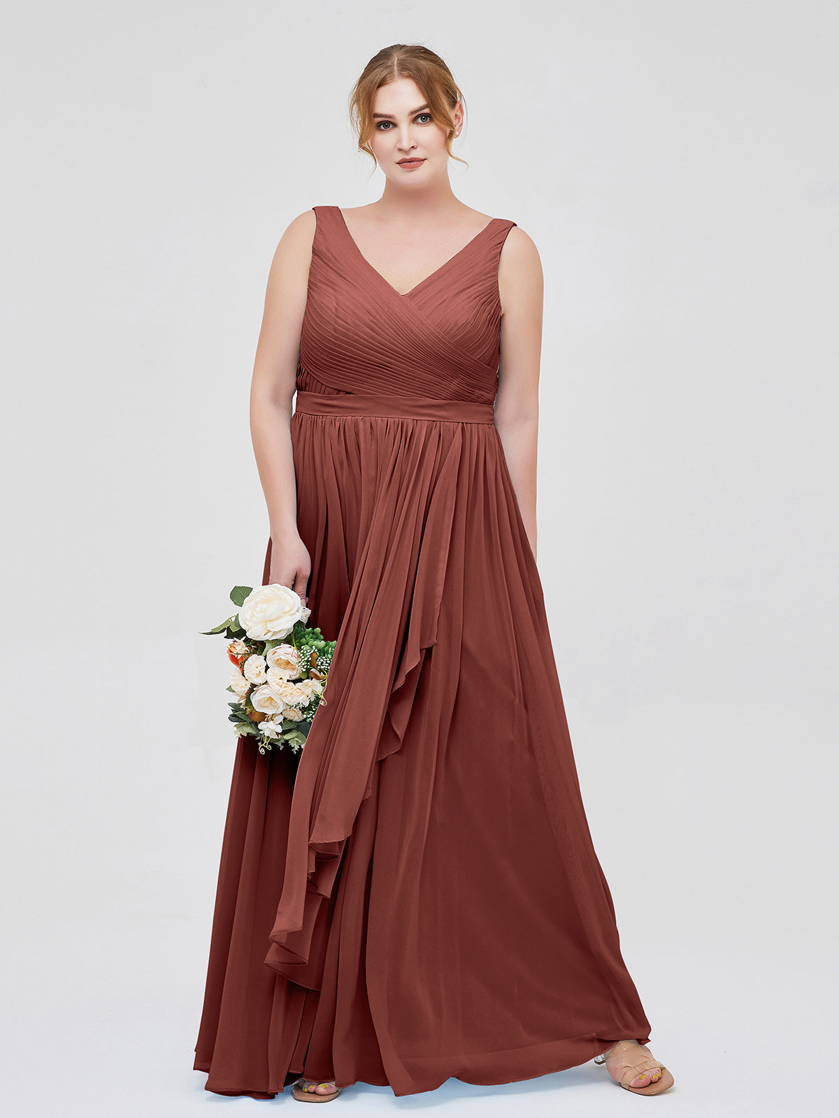 Josephine Gasa Escote En V Vestido Con Falda En Cascada Terracota Tallas Grandes