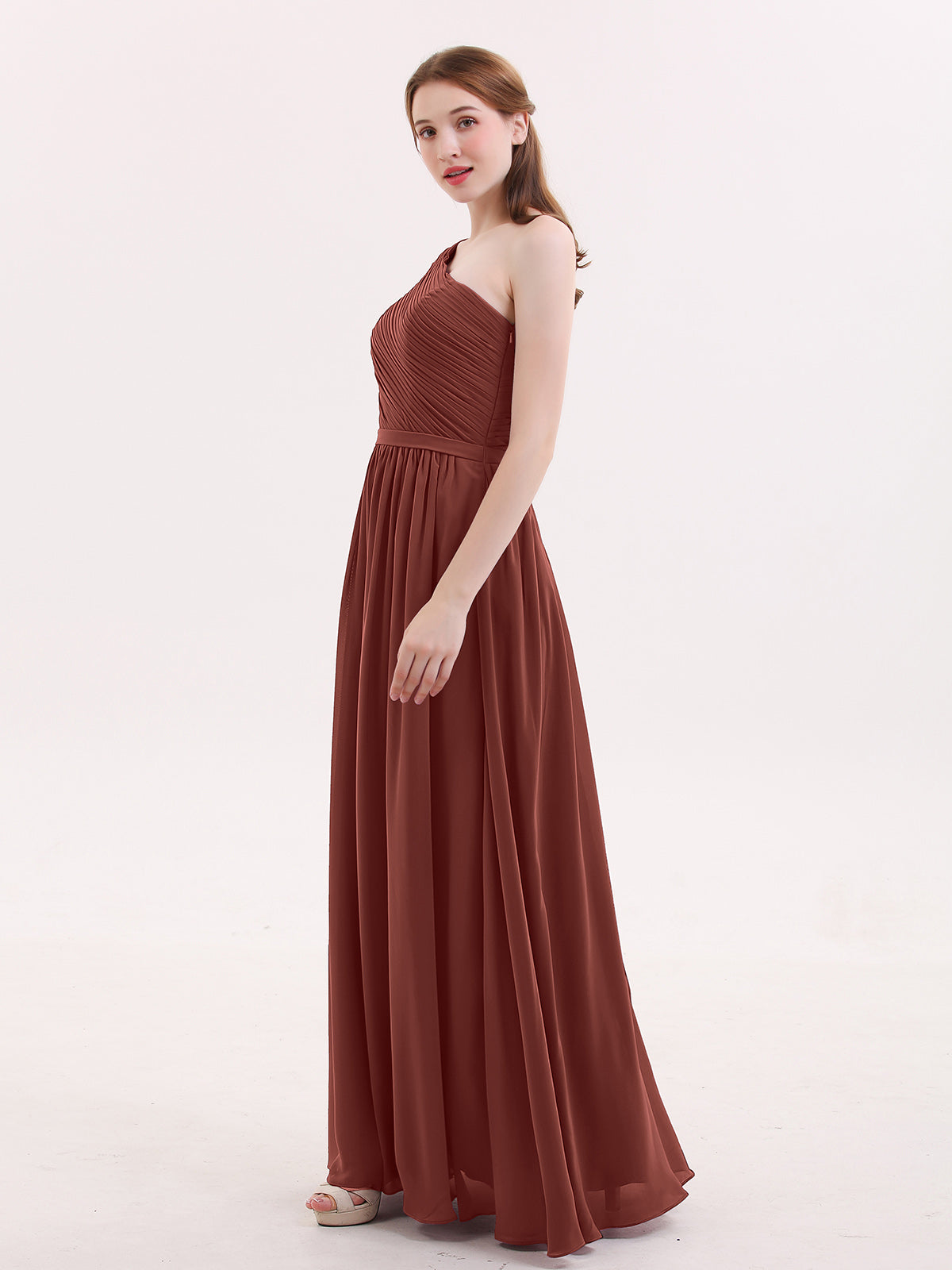 Juliet Un Hombro Corte De Dama De Honor Con Faja Terracota