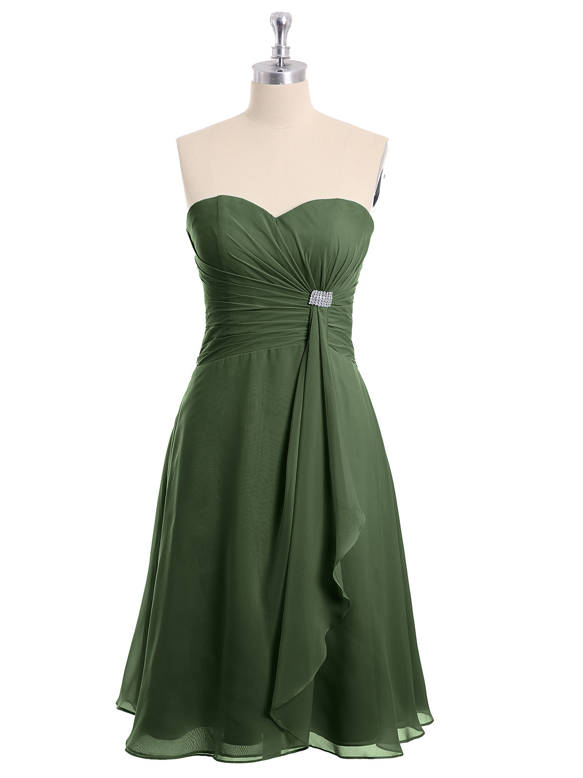 Vestido de chiffon a la altura de la rodilla con escote en corazón Verde Oliva
