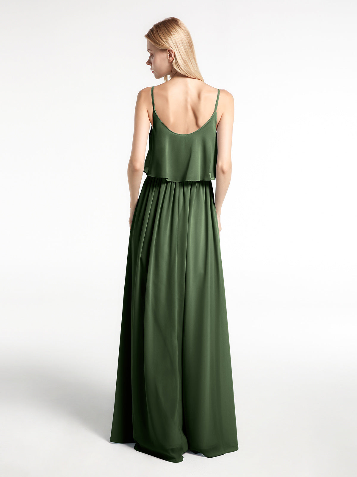 Vestido de chiffon con tirantes finos y cuerpo de capas con escote tipo scoop Verde Oliva Tallas Grandes