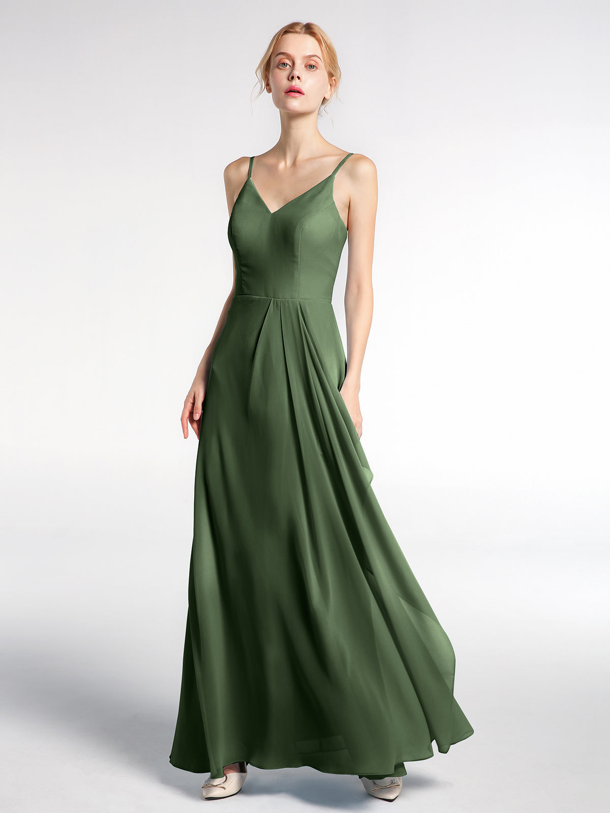 Vestido maxi simple de chiffon con escote en V y tirantes finos Verde Oliva