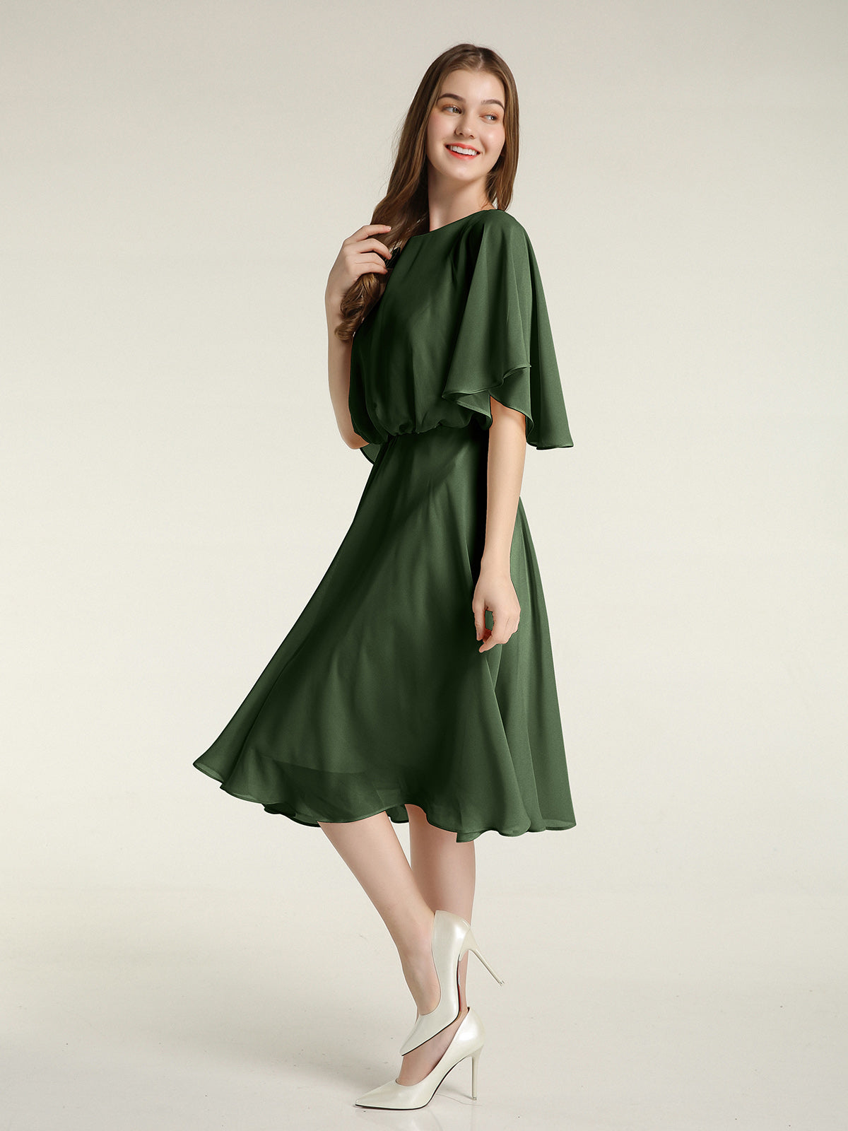 Vestidos cortos de chiffon con escote tipo scoop y mangas de volantes Verde Oliva