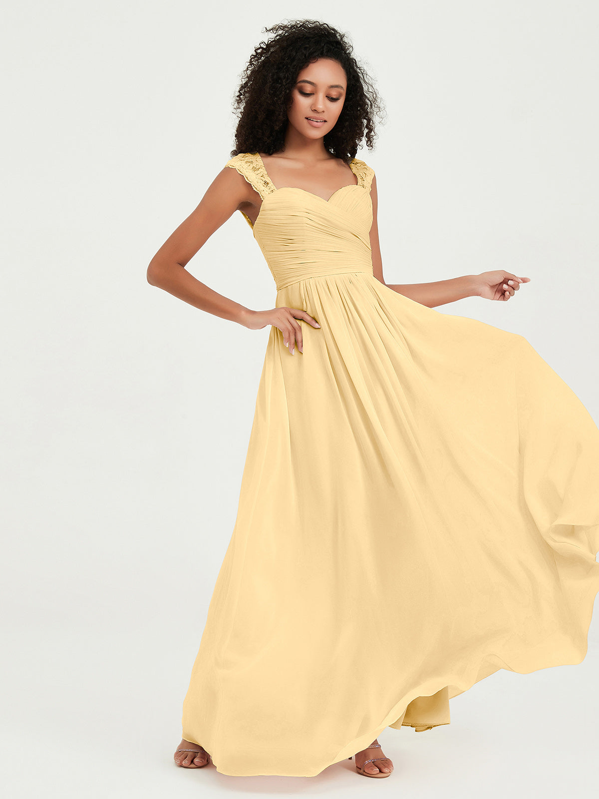 - Helen es un atractivo vestido de chiffon con hombros cubiertos hecho de encaje.