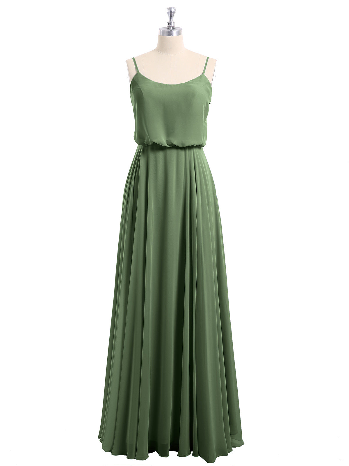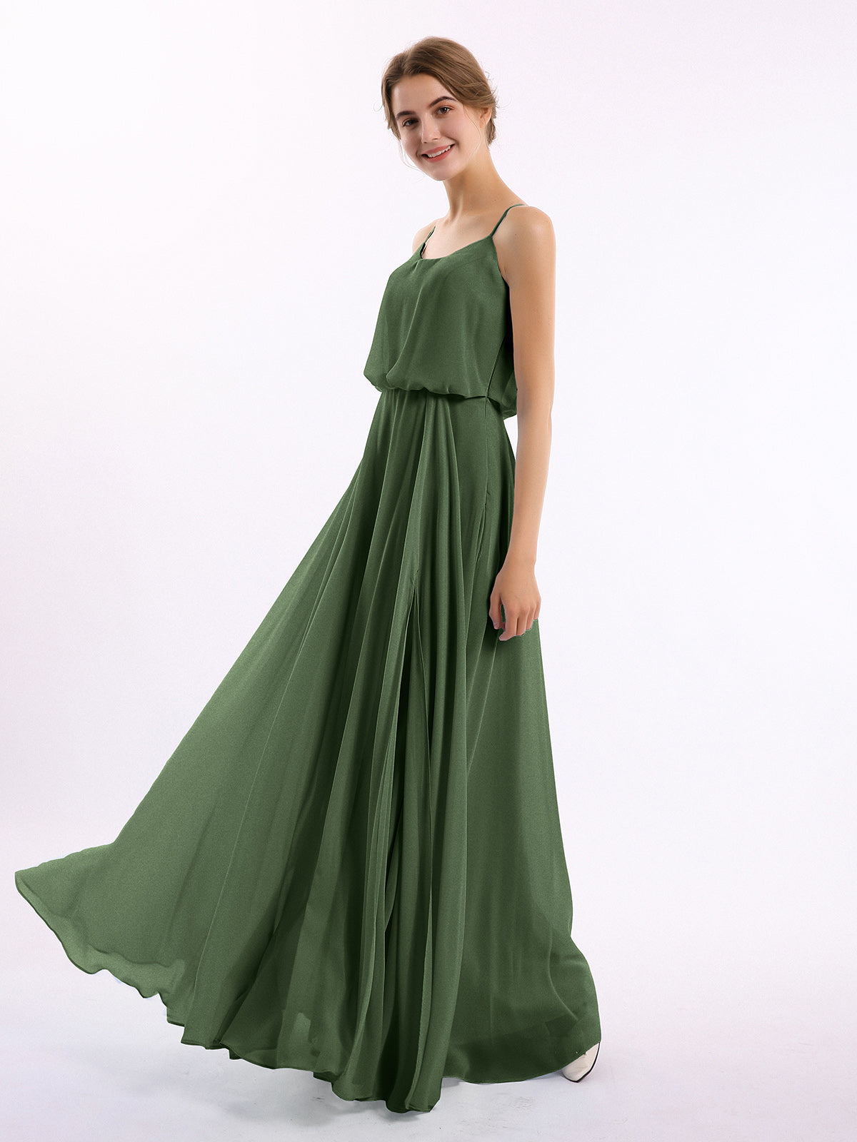 Vestidos de chiffon con tirantes finos y escote tipo scoop con abertura Verde Oliva