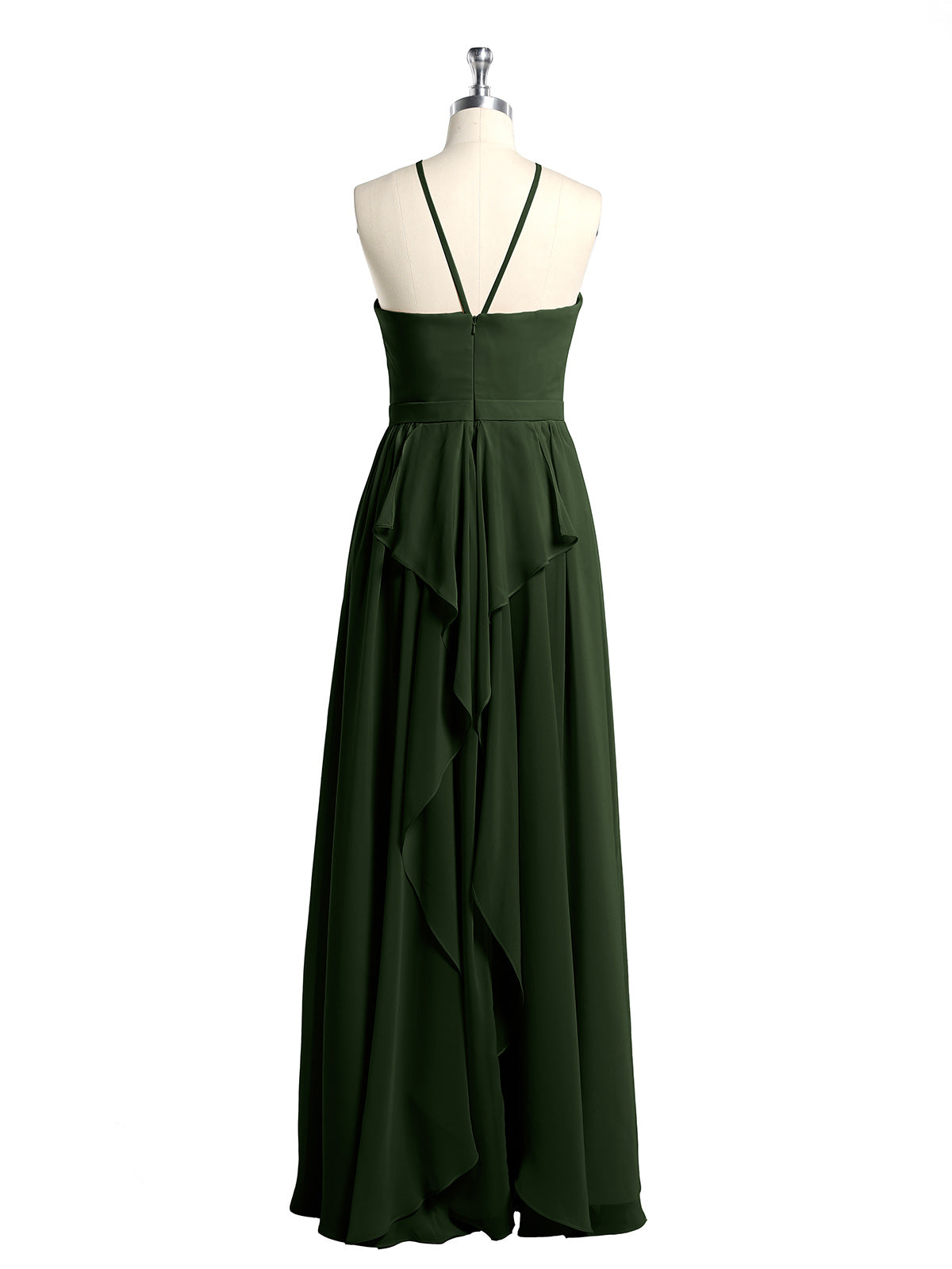 - Miriam es un vestido halter de chiffon con estilo seductor.