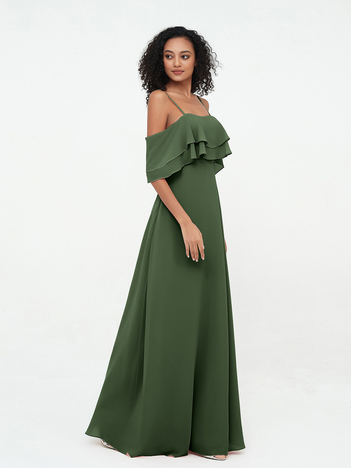 Vestidos máximos de hombros descubiertos y tirantes spaghetti Verde Oliva